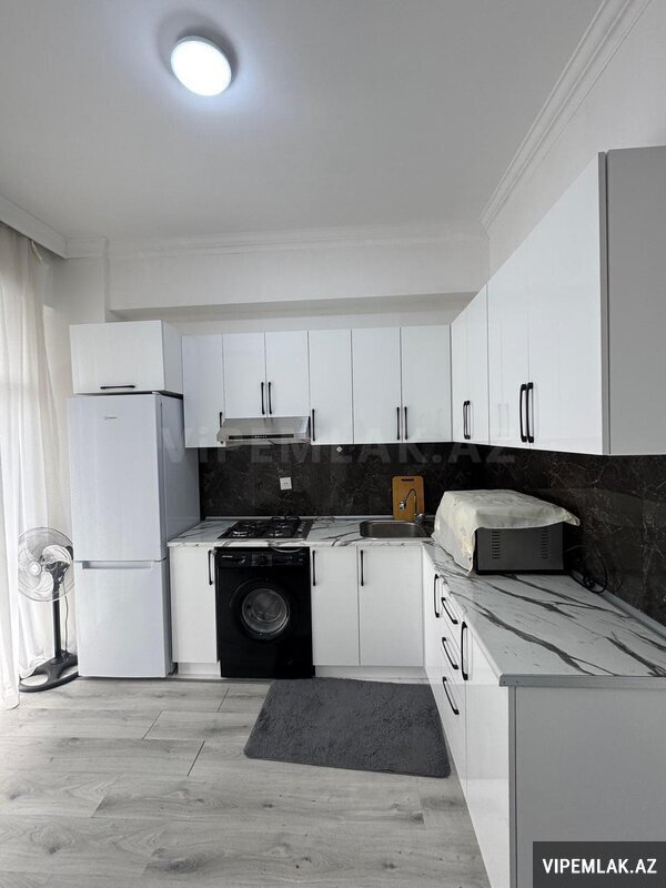 Mənzilin quraşdırılmış mətbəx mebeli, eyvanı, kombi sistemi, duş-kabinası və s var