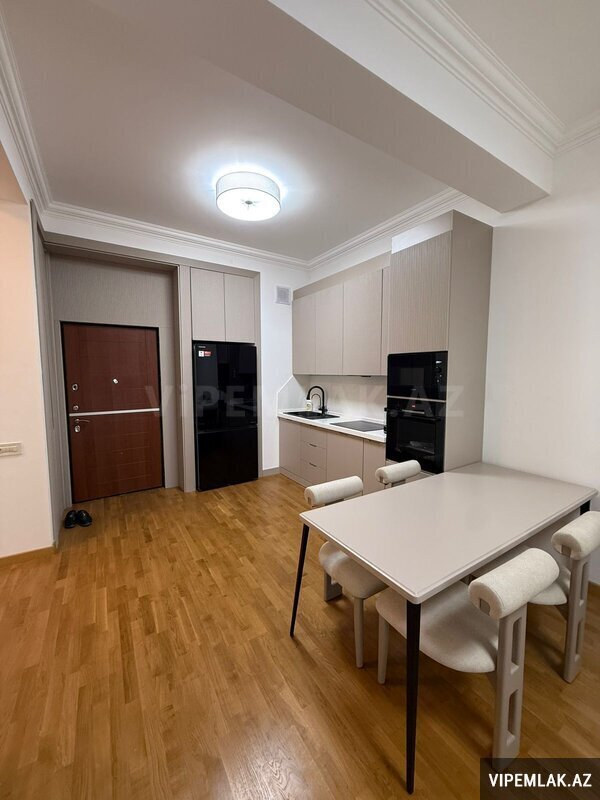 Mənzilin quraşdırılmış mətbəx mebeli, eyvanı, kombi sistemi, duş kabinası və s var. .