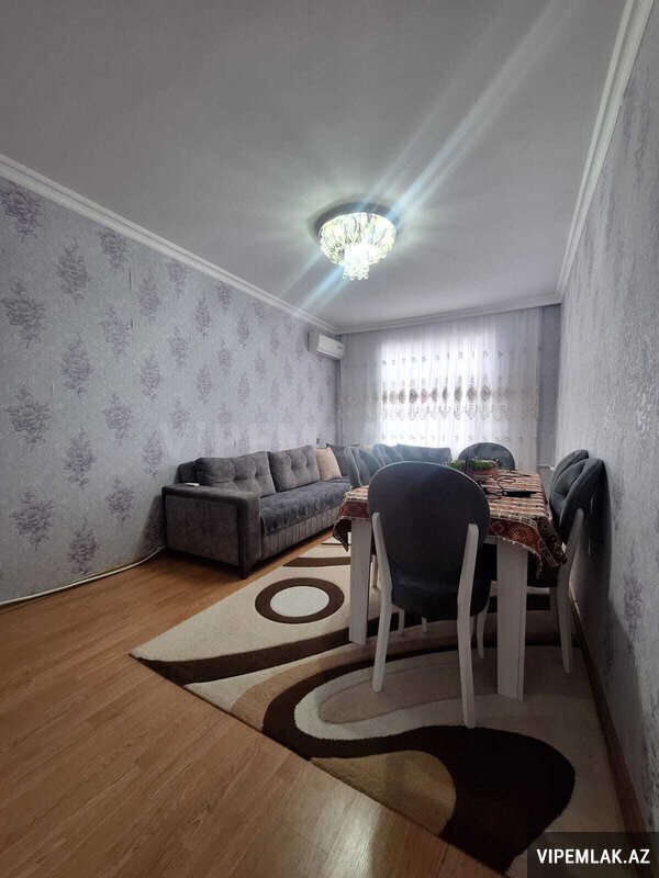 Yeni Günəşli massiv Q-də Azpetrolla üzbəüz 6/9-sı, Giryaşa sahəsi 70 kv.m olan qanuni 2+3 düzəltmə (qanuni 2 otaqlı) istilik sistemi kombi olan eksperimental layihəli, kupçalı, texpasportlu (texniki pasport)