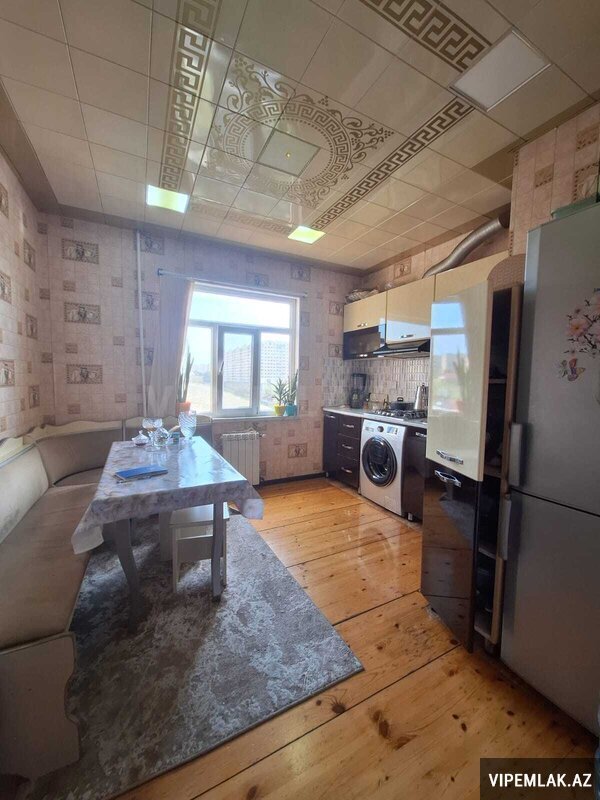 Sabuncu r-n., Bakixanov qes., Bakixanov Rezidencin binasinda 16/4 mertebesinde, sahesi 100 kv.m. 2 s/g, istilik sistemi lombi (isti pol) super temirli butun avadanligi ile 3 otagli menzil satilir. Yatag otaginda oz s/g