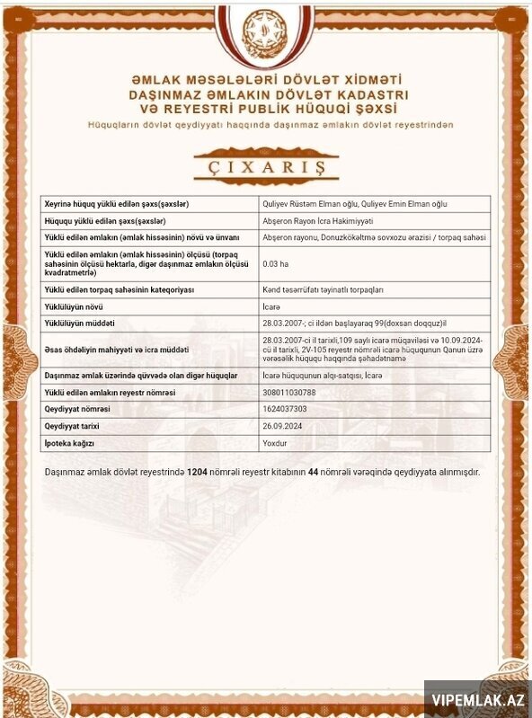 31 000 Azn Abşeron rayonu , Masazır qəs., 2 otaq