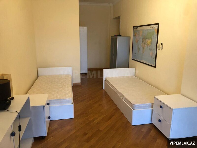 City center/Fountain Sq/spacious and cozy 4 rooms apartment with the size of 240 sq.m. Apartment has got a view of the Old City, Flame Towers and Fountain sq: spacious living room and equipped kitchen with the balcony facing the Flame Towers, master bedroom with its own en-suite bathroom and walking wardrobe and detached 40 sq.m terrace, facing the Fountain Sq, second and third bedrooms that can be used as an study room of equipped, 2 full bathrooms with shower and jacuzzi facilities. Good quality repair. Parquet wooden floor. The apartment is fully equipped; air conditioning in each room, washing machine, dish washer, dryer, cooling/heating, all kitchen utensils, etc. 2 elevators. Parking. The apartment is bright/has got lots of natural light.