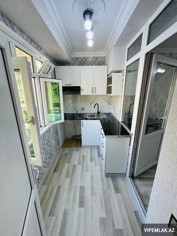General Şıxlinski küçəsi 35-ci Polis bölməsinin yanında 9 mərtəbəli LENINQRAD layihəli binanın 9-cu mərtəbəsində ümumi sahəsi 60 kv.m olan 2 otaqdan 3 otağa düzəlmiş, ORTA blokda yerləşən, SKVAZNOY (YELÇƏKƏN), QİSMƏN
