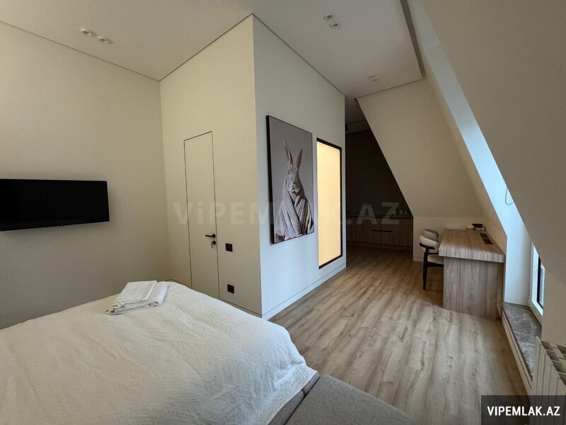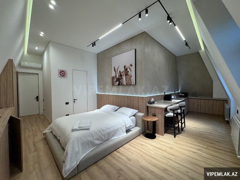 Bu mənzil 2 otaqdan ibarət tam əşyalar ilə təmin olunmuş yüksək səviyyədə dizyn və təmir olunmuş mənzildir. Hər otağın daxilində, mətbəxi, Əşyaları və Hamam otağı, Sanuzel vardır. Mənzili alıb otel kimi və ya xarici qonaqlara günlük və aylıq icarə olaraq verə bilərsiniz.