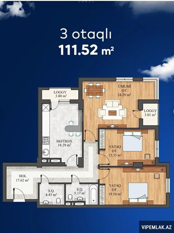 * Otaq Sayı : 3 otaqlı