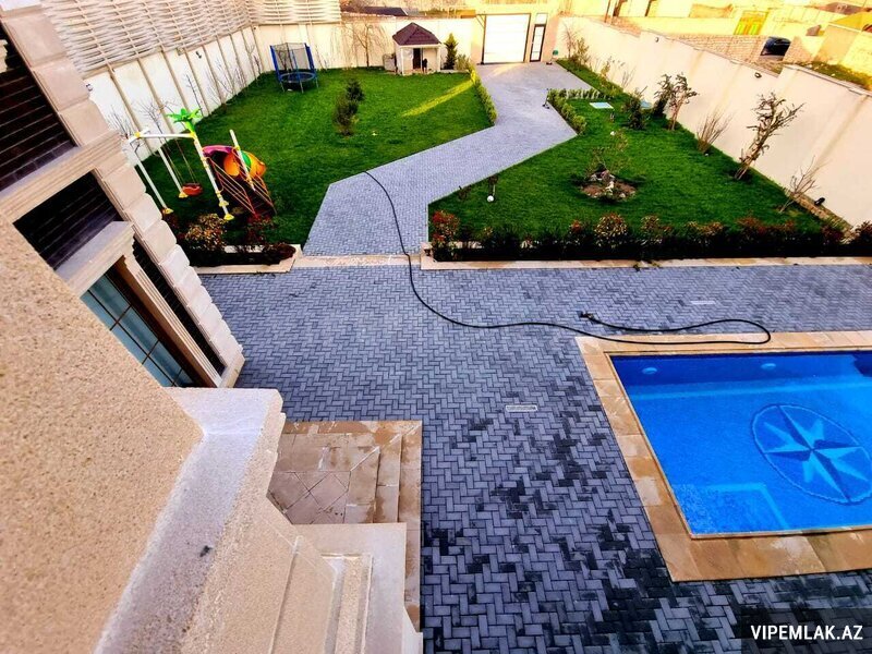 Birinci mərtəbə qarajdır, əla təmirli, uzaqdan idarə olunan jaluz varota.