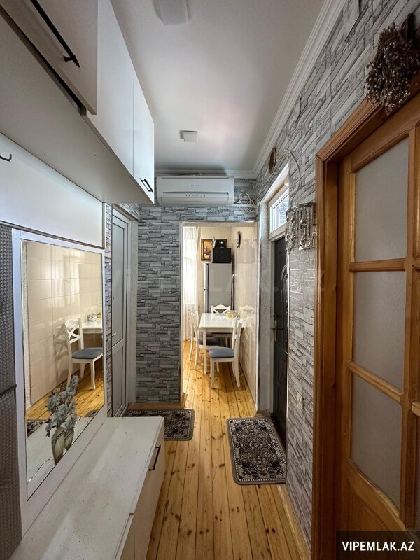 Xəzər rayonu Binə qəsəbəsi 218 saylı məktəbin tam yaxınlığında 1, 5 sotda 7daş kürsülü 3 otaq koridor sistemli mənzil . Bütün otaqların pəncərəsi var və həyətə baxır . İçməli suyu və çəni var . Kombi sistemi işləkdir .