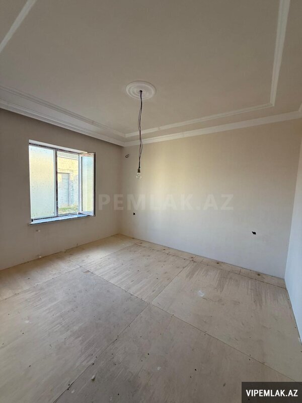 Asagida ise 1 otaq yungul temir olunub diger otaqlar zirzemi kimi istifade olunur. Evin genis balkonu var. Balkonda