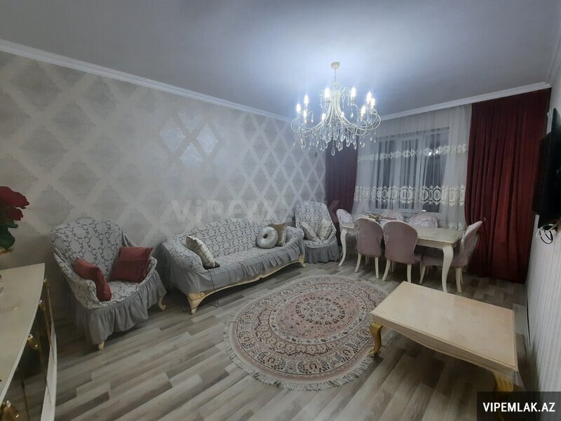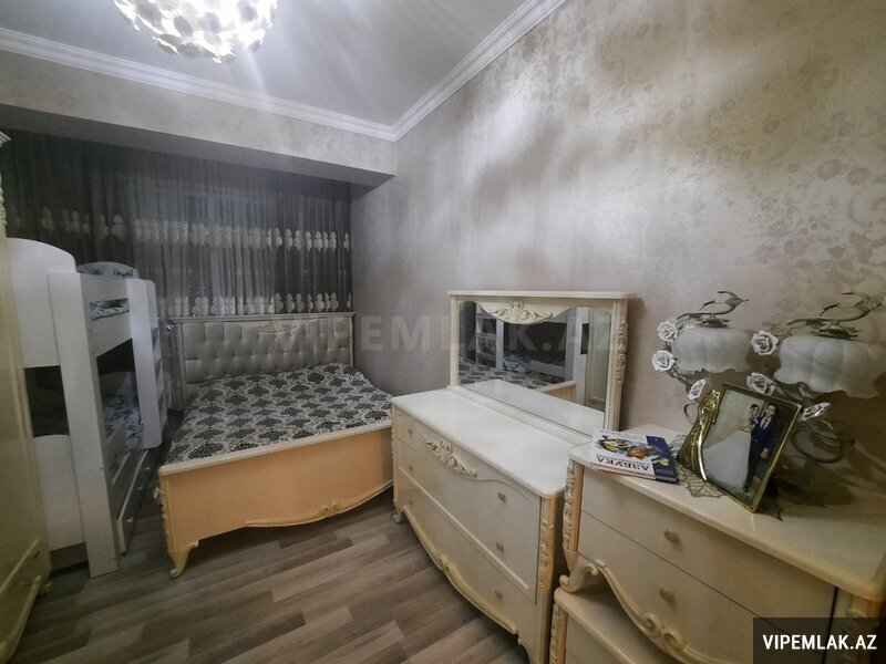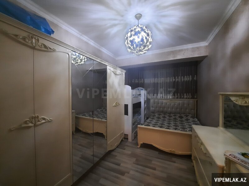 Menzil Bakıxanov qəsəbəsi, Yavər Əliyev küçəsi, 20 mərtəbəli binanın 5-cı mərtəbəsində yerlesir. Umumi sahəsi 82 kv.metr olub, qanuni 2 otaqlı, temirli, cam balkonludur. Esyali satilir. Qaz, su, işıq daimidir, istilik