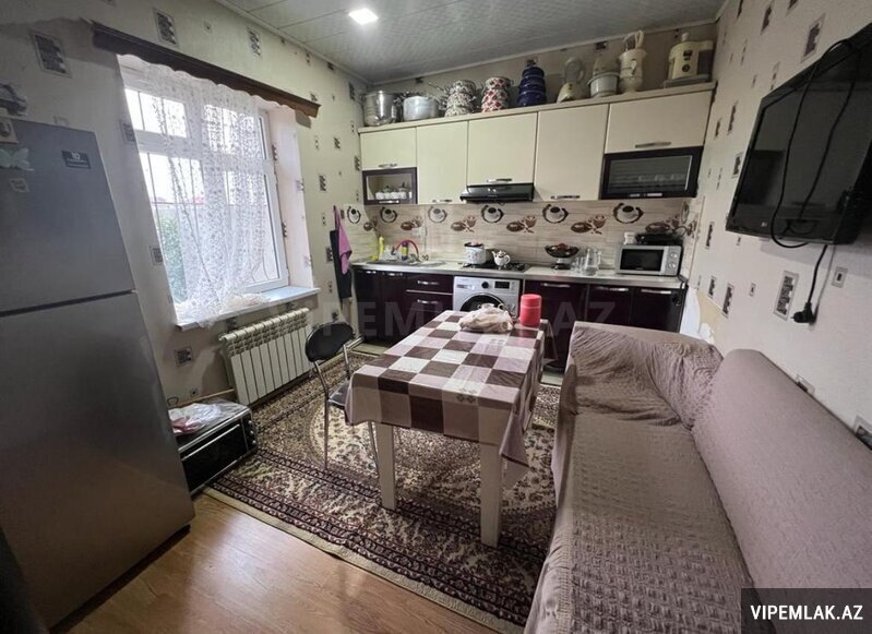 Paket kupçalı eşyali 3dest mebel olan yataq mebeli, qonaq mebeli stol-6 stulu, mətbəx mebeli stol-stullari, kombi sistemi, internet vifiyi, ehtiyat 2dene su çəni ve su matoru, kommunal şəraiti olan heyet evi satılır,