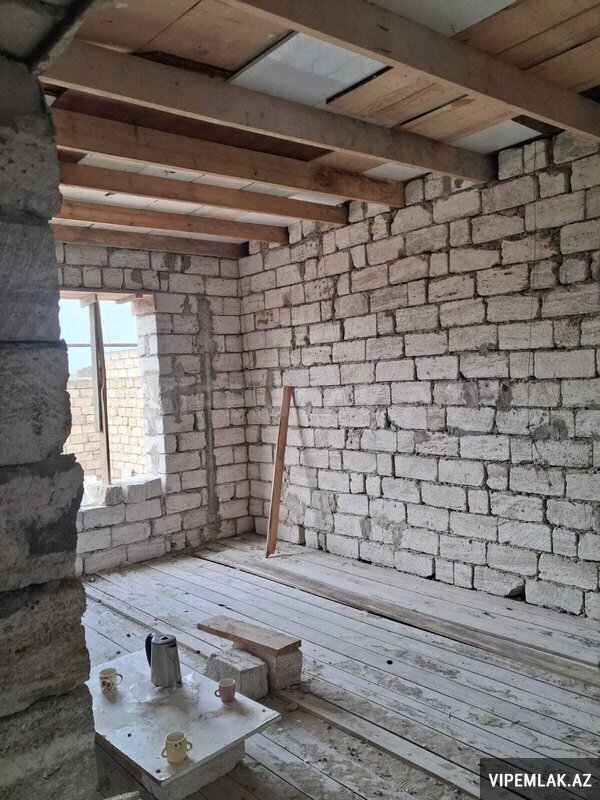 9×4 zal, qoşa daş, 2 otağa çıxış, fundament hazır.