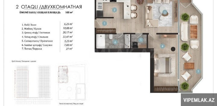 - Sahəsi: 105 kv.m.