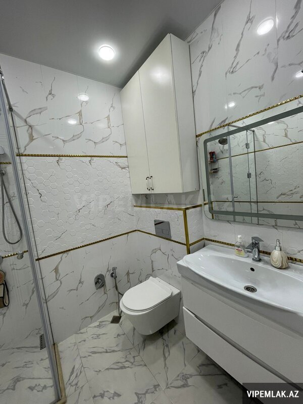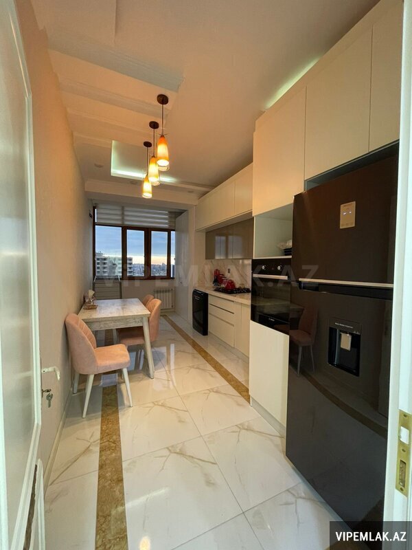 Mənzilin quraşdırılmış mətbəx mebeli, kombi sitemi, eyvanı, duş-kabinası və s var