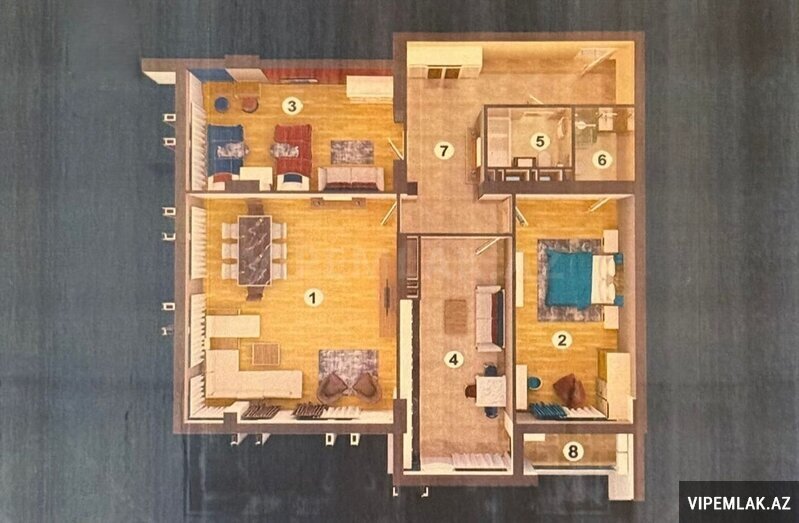 Sabuncu r-n., Bakixanov qes., Bakixanov Rezidencin binasinda 16/4 mertebesinde, sahesi 100 kv.m. 2 s/g, istilik sistemi lombi (isti pol) super temirli butun avadanligi ile 3 otagli menzil satilir. Yatag otaginda oz s/g