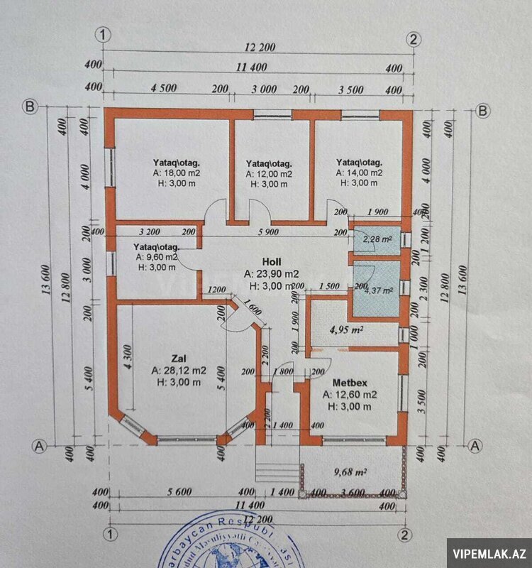 Sənəd: Sənədləri tamdır, evin layihəsi də var, çıxarış almaq mümkündür (125 AZN xərc tələb edir)