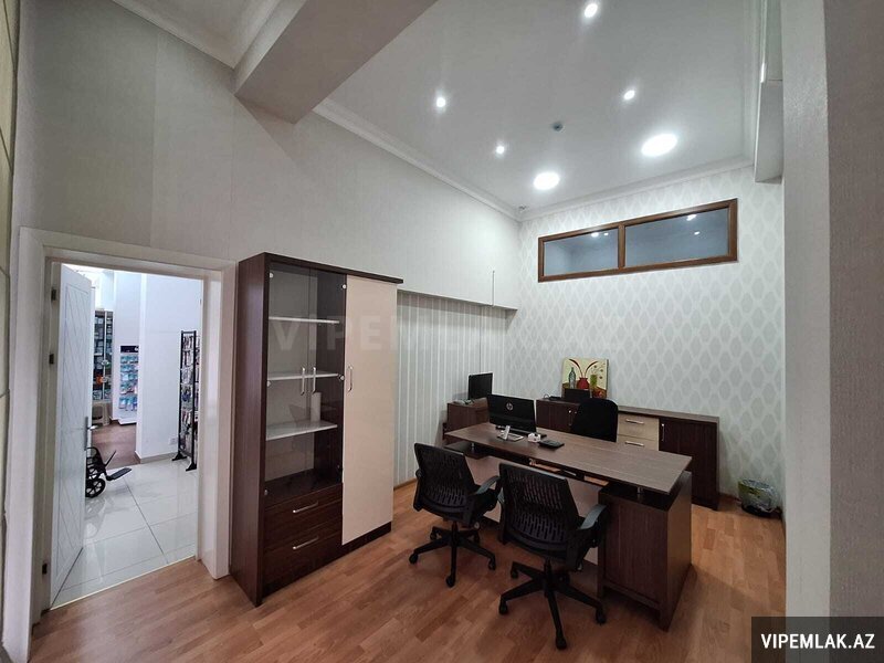 Ümumi sahəsi 840 kv.m. olan obyektin böyük vitrin şüşələri və hündür tavanı var.
