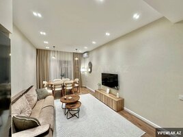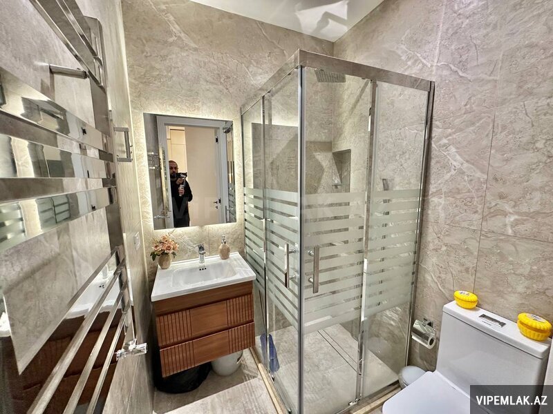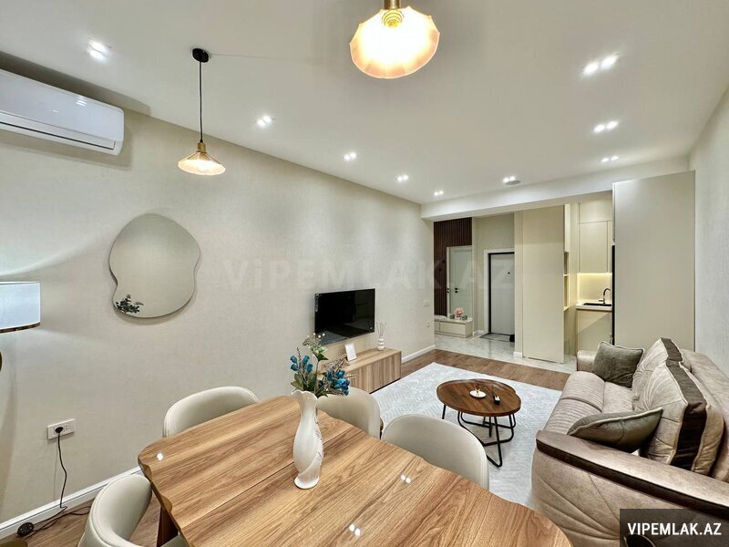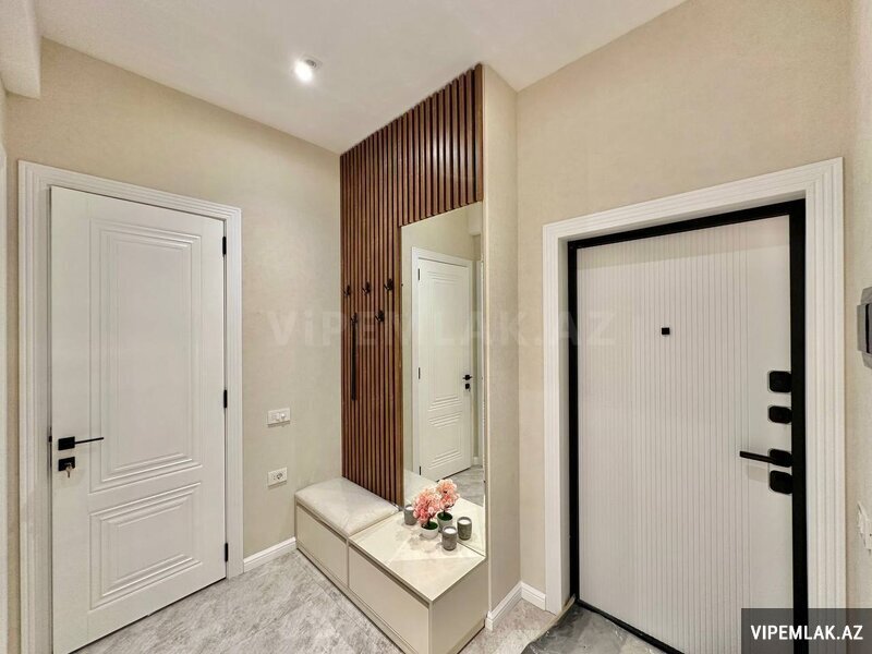 Ev 18 mərtəbəli binanın ikinci mərtəbəsi tam premium menzildir yerləşdiyi blokda en prestijli menzildir. Evin öz kvadrati kupçada ki kvadratindanda çoxdur.Kupçada hamam tualet balkonlar ve metbex nezere alınmayıb. 2ci