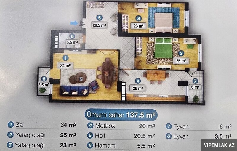 14 mərtəbəli binanın 3 cü mərtəbəsində Ümumi sahəsi 146.67 kv olan qanuni 3 otaqlı mənzil satılır!
