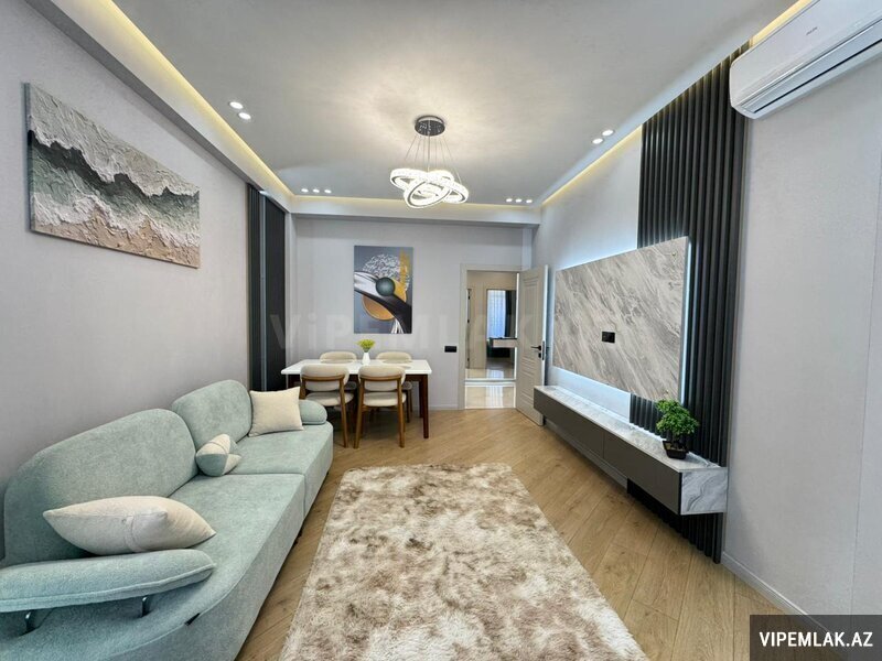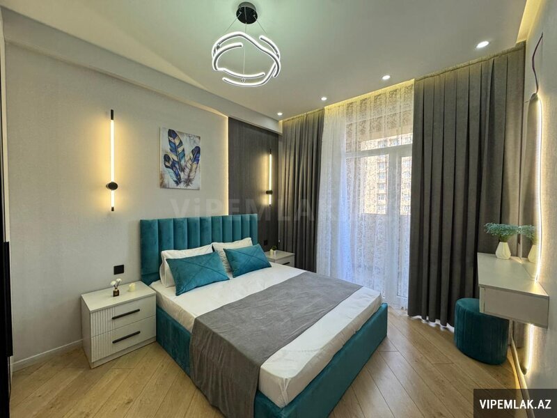 Şəhərin ən prestijli yaşayış komplekslərindən biri olan Renessans Palace-da yerləşən bu mənzil geniş sahəsi, keyfiyyətli təmiri və