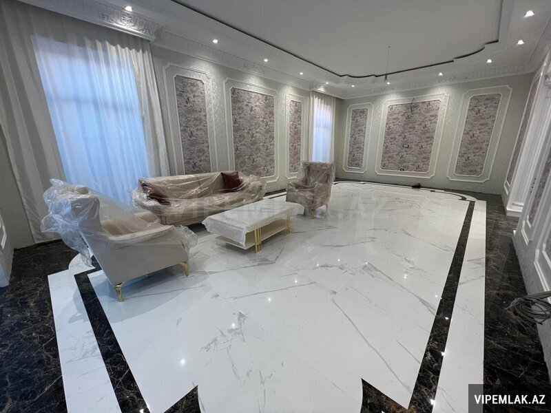 Ümumi sahəsi 220 m² olan evin dəhlizi, qonaq otağı, 3 yataq otağı, 2