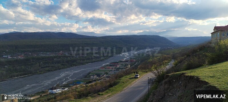 Torpağın 6 sot Çıxarışı var 2 sot əlavəsidi əsas yoldan 150-200 m aralidi Şah əsəri restoranın üzbəüz yerləşir. Mənzərə arxa tərəfi Meşəlik ön teref Qəçrəş meşəliyi, Qudyalçay və Şahdağ silsiləsi