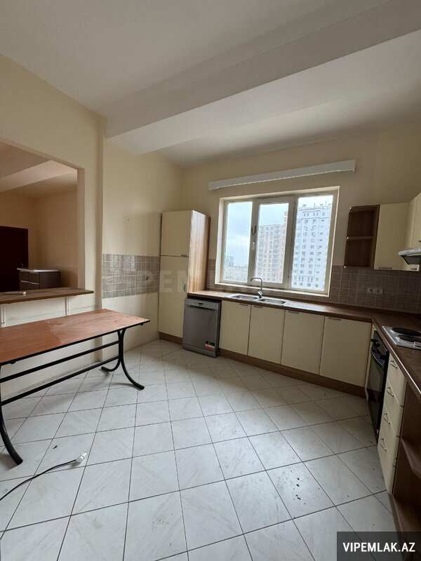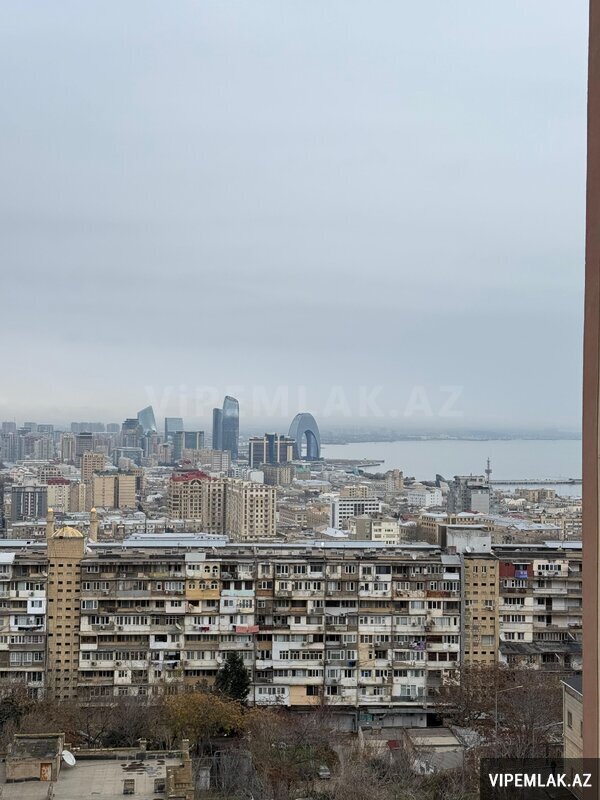 Elmer metrosu yaxinligi, Qutqasinli kucesi, yeni tikili KUPCALI binada shehere gozel meneresi olan, umumi sahesi 208 kv m olan 4 otaqli menzil satilir. Mertebe 18/9, yaxsi temir, yelceken, doseme parket, qurasdirilmis metbex mebeli 2 sanuzel, her otaqda kondisionerler, su, isiq daimdir. Butun senedler qaydasindadir. Binada suretli lift, parking yeri, ushaq meydancasi, muhafize olunan heyeti. Yaxinliqda usaq baxcasi, mekteb, dayanacaq, market ve diger iase xidmeti obyektleri yerlesir.