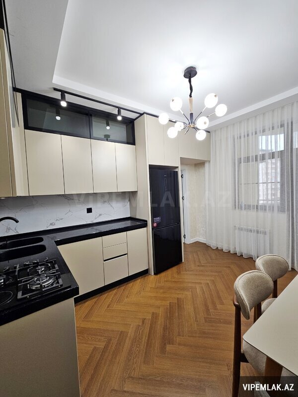 Badamdarın mərkəzi, Caspian İnternational Hospitalın yanı ipotekaya yararlı yeni tikili, çıxarışlı, qazlı binada sahəsi 130 kv.m, çıxarışda 120 kv.m olan, 9/14, yelçəkən qanuni 3 otaqlı mənzil əşyalarıyla birlikdə