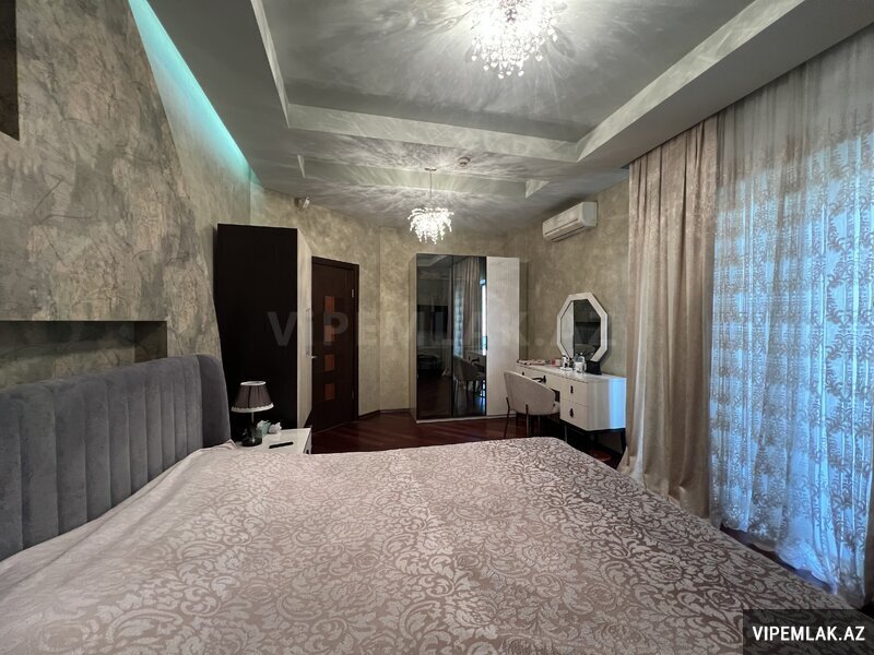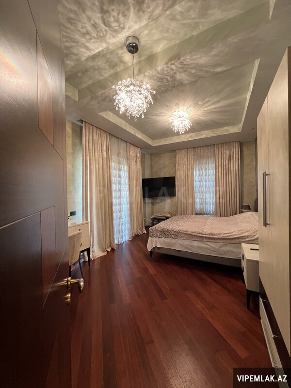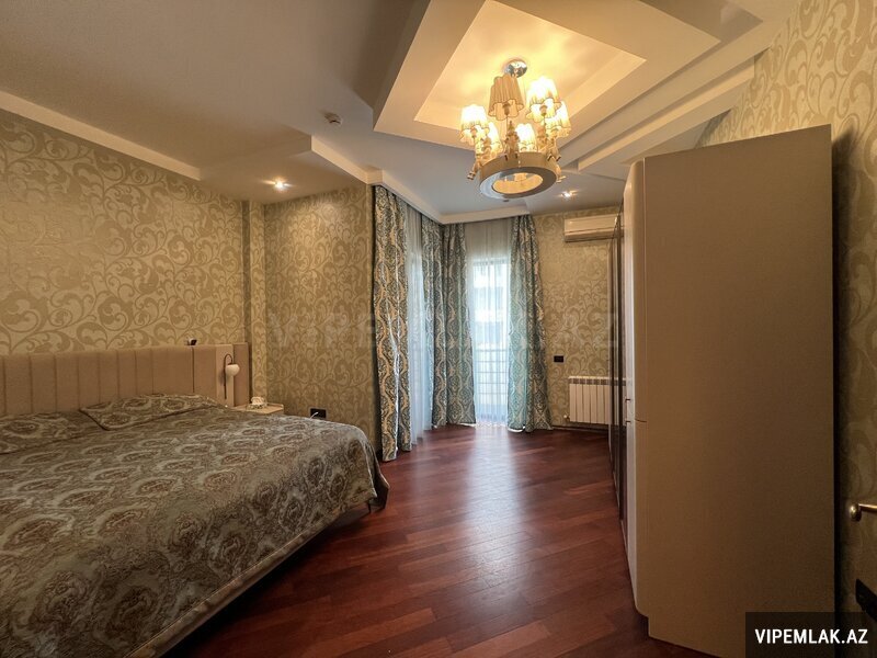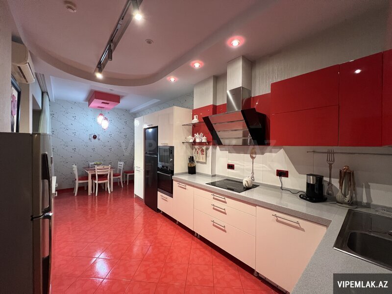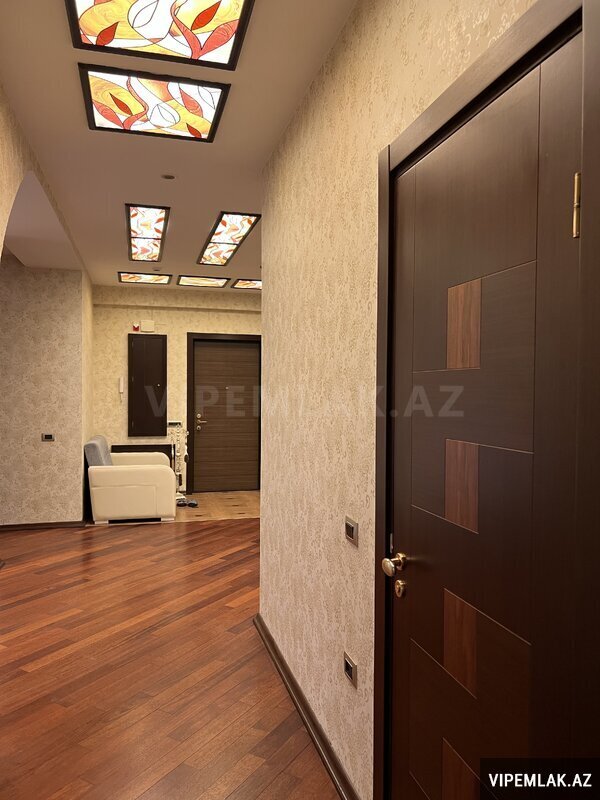 Vitraj və böyük pəncərələr, 2 acıq eyvanı və 1 Cam balkon, 2 vanna otağı, geniş paltar dolabı. Döşəmə parket, 4 split-kondisioner "Mitsubishi", mətbəx mebeli, isti döşəmə, seyf qapı, domofon. Tam Əşyalı satılır.