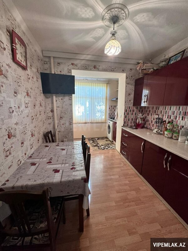 Sabuncu r-n., Bakixanov qes., M.Amirov kuc. 5/5 mertebesinde Leningrad layiheli, yekceken, sahesi 102 kv.m., ela temirli, seligeli, 4 otagli menzil satilir. Boyuk heyeti, parking ve istrahet ucun besedkalar var. Butun
