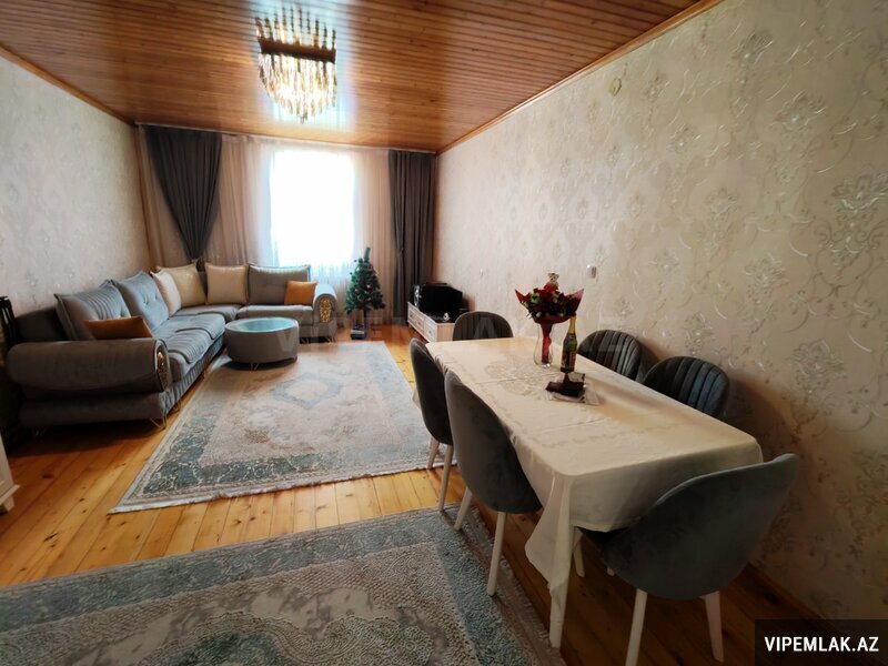 Ümumi tikili sahəsi 75kv.m olan ev dəhliz, 1 qonaq otağı, mətbəx, 2 yataq otağı