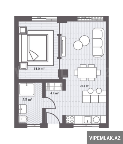 • Sahə 59.57kv. 3-cü mərtəbə. 2 otaq.