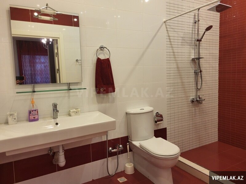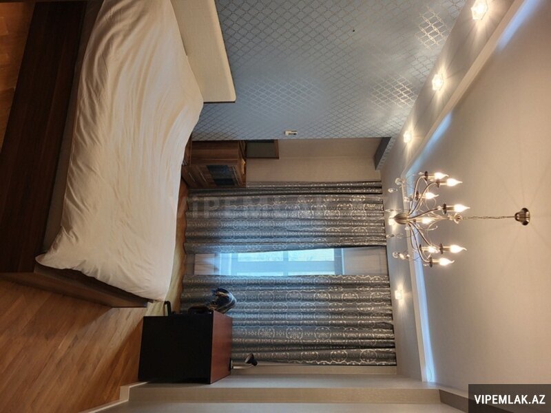 A comfortable 4-room apartment with total area of 200 square meters is available for renting near the Aquapark on Rashid Behbutov Street. 3 bedrooms, 2 bathrooms with Jacuzzi and a shower with expensive repair in modern style. The kitchen is built-in and fully equipped. Washing machine and dishwasher. Individual heating system. The rooms are very light and wide. The apartment is with panoramic windows and a large balcony of 17 square meters. Heated floors. Very comfortable layout. There is the sports complex "Aqua Park" near the house, which includes a gym, a restaurant, a sauna, a swimming pool, a beauty salon and a large supermarket that operates 24 hours a day. The building is guarded 24 hours a day. The apartment is located 5 minutes’ walk from the business center of the capital. The rental price is 2500 manat per month. The apartment is also rented on a daily basis 150 manat per day.