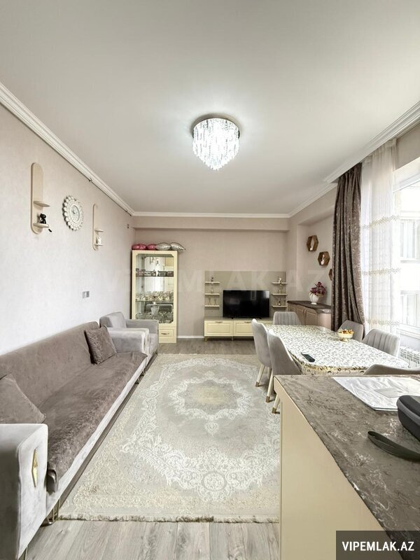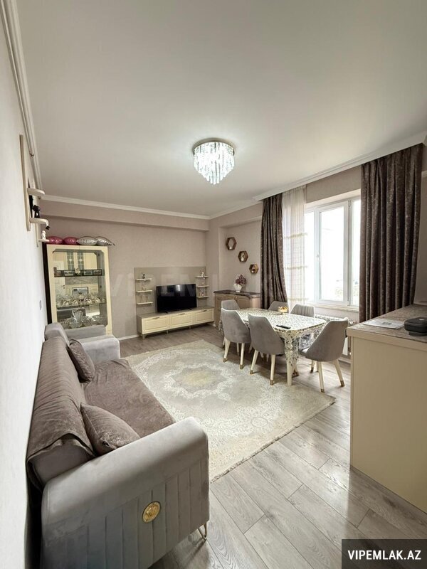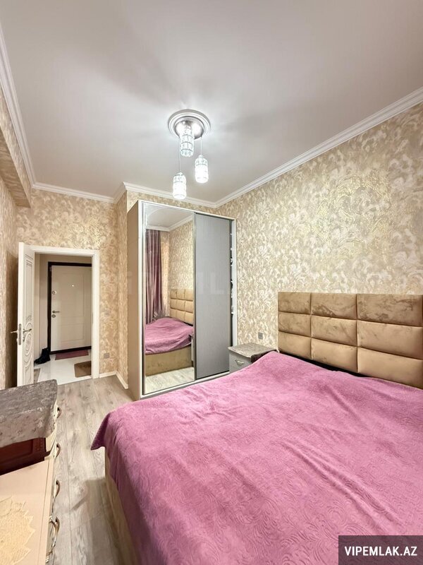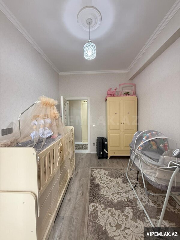 Menzil Bakıxanov qəsəbəsi, Yavər Əliyev küçəsi, 20 mərtəbəli binanın 5-cı mərtəbəsində yerlesir. Umumi sahəsi 82 kv.metr olub, qanuni 2 otaqlı, temirli, cam balkonludur. Esyali satilir. Qaz, su, işıq daimidir, istilik