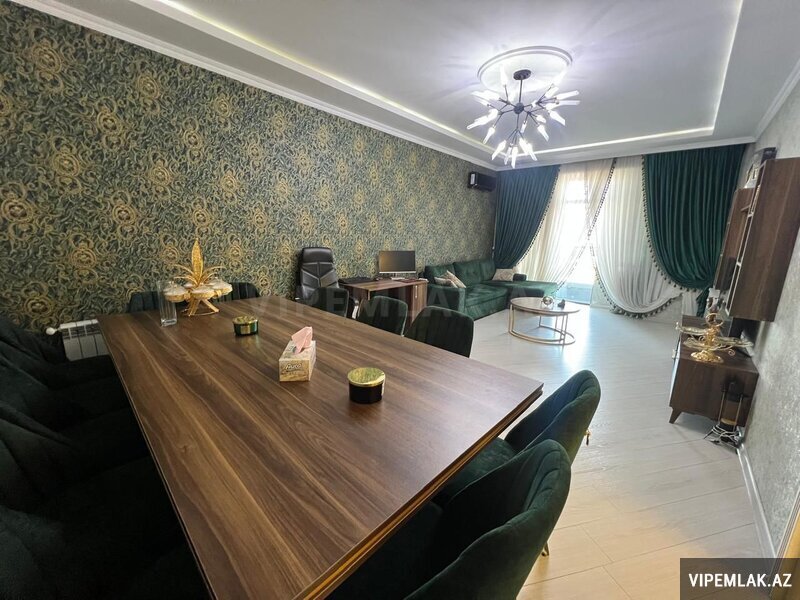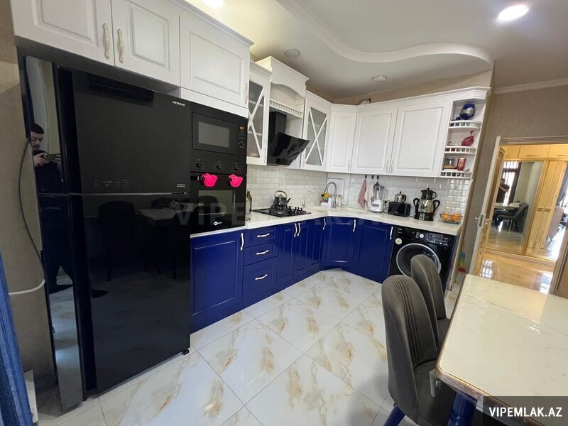 Сдается в аренду уютная 4-комнатная квартира по улице Рашида Бехбутова около Аквапарка. Площадью 200 кв. с дорогим ремонтом в стиле модерн, 3 спальные комнаты, 2 санузла, джакузи и душевая. Кухня встроенная и