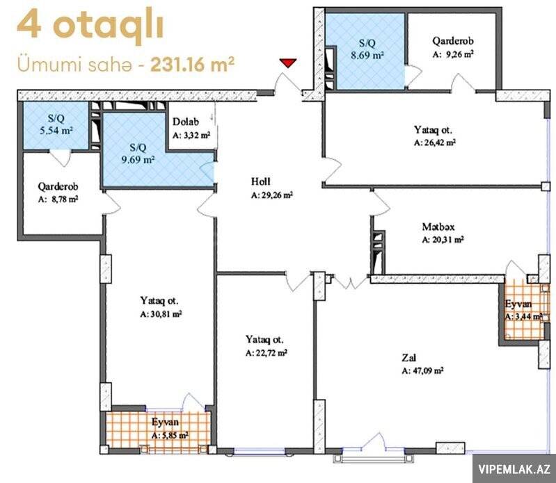 - Sahəsi: 68 kv.m.