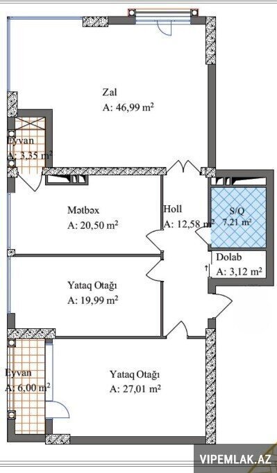 Ümumi sahə: 56 kv.m