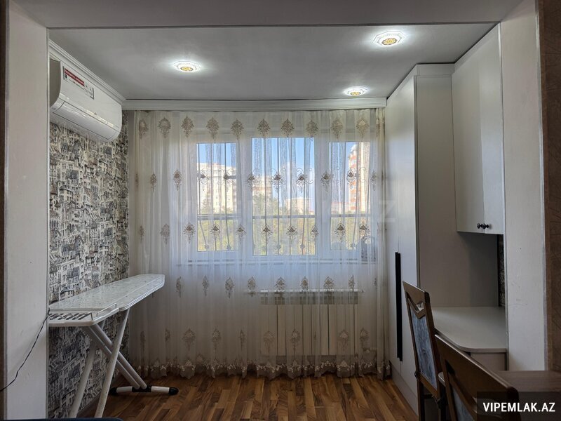 9 mərtəbəli binanın 4 cü mərtəbəsi , 3 otaq təmirli , 2 balkon , döşəmə ( pol ) taxta , 300 litrlik ehtiyat su çəni , mərkəzi istilik sistemi , avtobus dayanacağına 3 dəqiqəlik məsafə 132-120-121-103-161 nömrəli