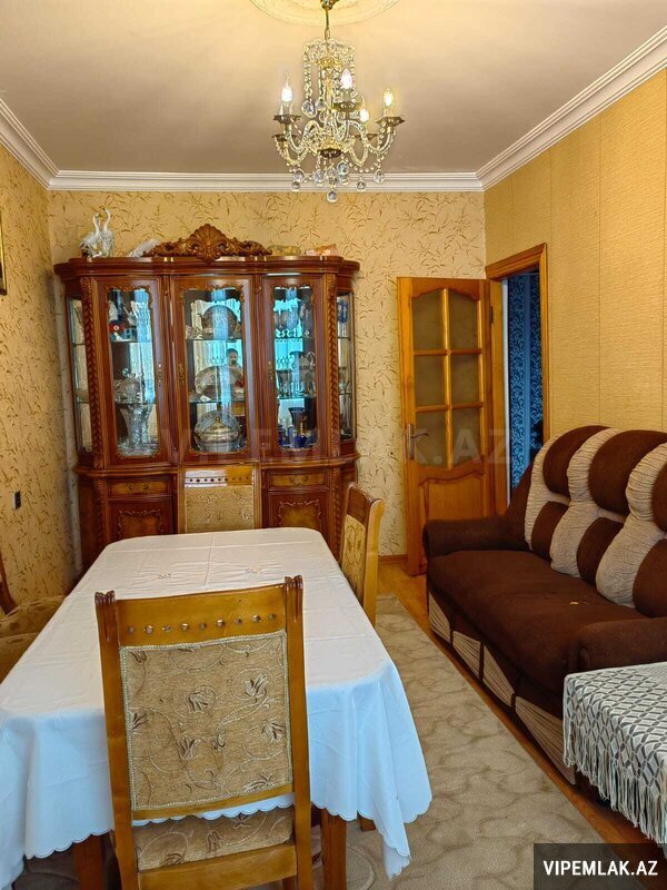 Sabuncu r-n., Bakixanov qes., M.Amirov kuc. 5/5 mertebesinde Leningrad layiheli, yekceken, sahesi 102 kv.m., ela temirli, seligeli, 4 otagli menzil satilir. Boyuk heyeti, parking ve istrahet ucun besedkalar var. Butun