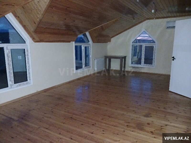 Elan nömrəsi: 7830663 mərtəbəli fərdi yaşayış evi. Müasir fasad, böyük panoram pəncərələr, iki geniş balkon, mansard tipli üst mərtəbə 2 otaqdan ibaretdir