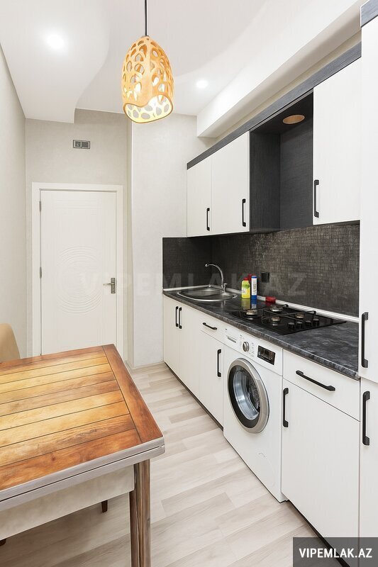 Mənzil 62 kv- 2 otaqdan ibarətdir, studio tiplidir. Hamam və sanitar qovşaqlarda