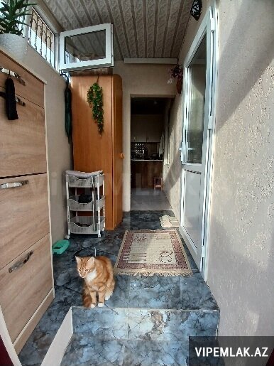 - Dəhliz/veranda hissəsi işıqlı, mərmər təsirli döşəmə üzlüyü