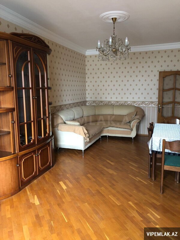 Apartment location near to Khatai metro station, a cozy 3-room apartment for rent monthly 950 manat. The apartment is fully equipped. Floor 9/7. Total area 90 sq.m.
