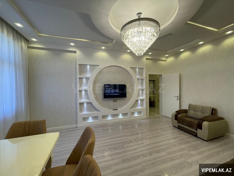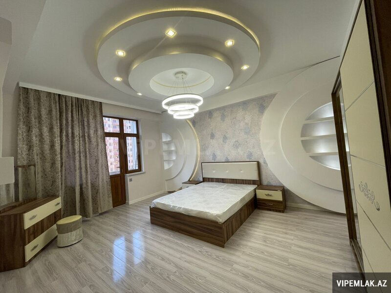 Сдается в аренду уютная 4-комнатная квартира по улице Рашида Бехбутова около Аквапарка. Площадью 200 кв. с дорогим ремонтом в стиле модерн, 3 спальные комнаты, 2 санузла, джакузи и душевая. Кухня встроенная и