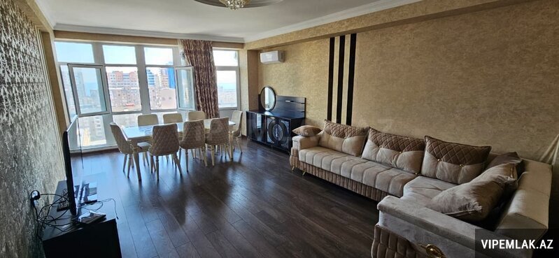 Bul-bul pr-ti, Sahil metrosunun ustunde yerlesen yeni yasayis kompleksinde temirli 4 otaqli menzil kirayeye verilir. 15/9, 200 kv.m., qaz, su, isiq daimi, her bir meiset avadanliqi ile tehciz olunmus metbexi, parket