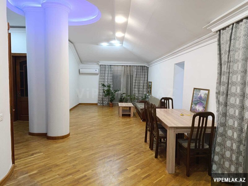 Сдается в аренду уютная 4-комнатная квартира по улице Рашида Бехбутова около Аквапарка. Площадью 200 кв. с дорогим ремонтом в стиле модерн, 3 спальные комнаты, 2 санузла, джакузи и душевая. Кухня встроенная и