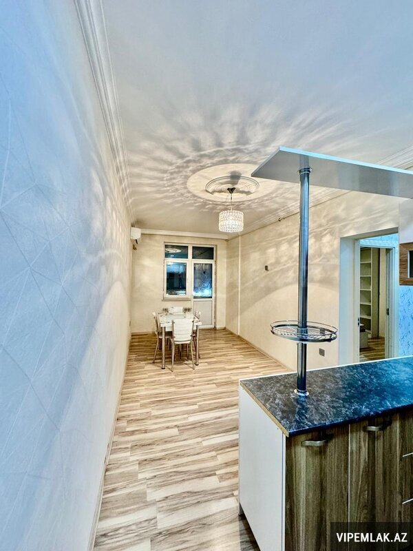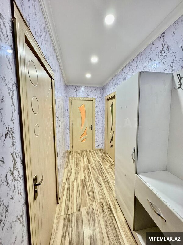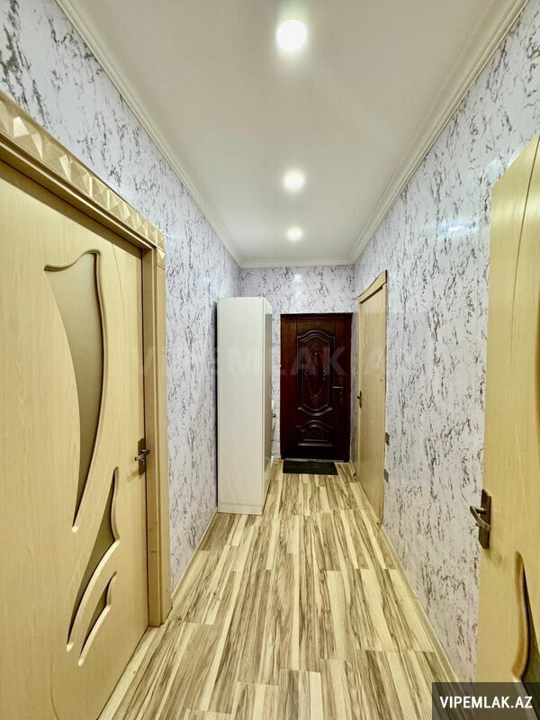 Abşeron rayonu Saray qəsəbəsində SARAY mtk kompleksində yerləşən yeni tikili 14 mərtəbəli binanın 4-cü mərtəbəsində ümumi sahəsi 63 kv olan, 1 dən 2 yə düzəlmə tam təmirli və əşyalı mənzil