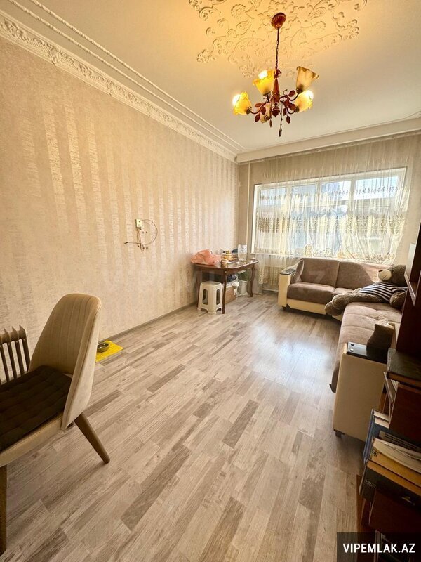 Nizami rayonu, Qara Qarayev pr., (Xalqlar dostluğu metro stansiyasının yanında) Köhnə tikili 9 mərtəbəli eksperimental layihəli binanın 3-cü mərtəbəsində, ümumi sahəsi 120