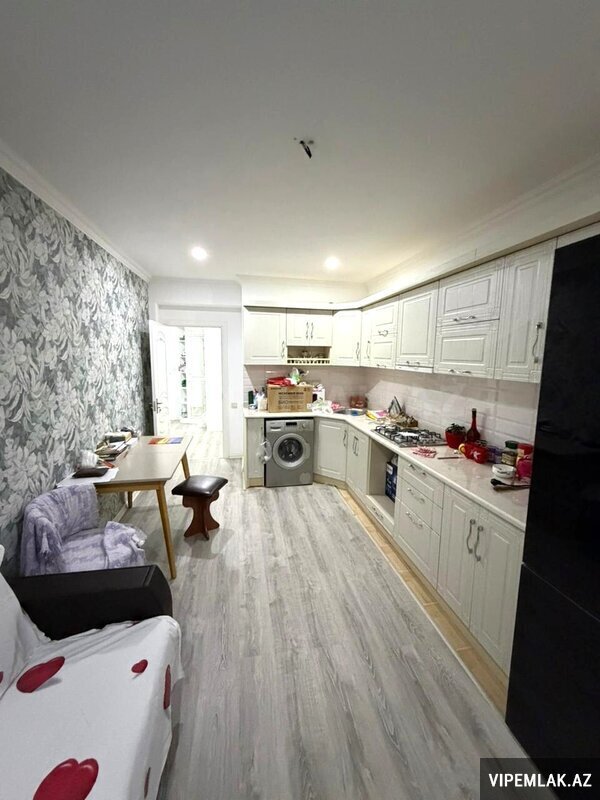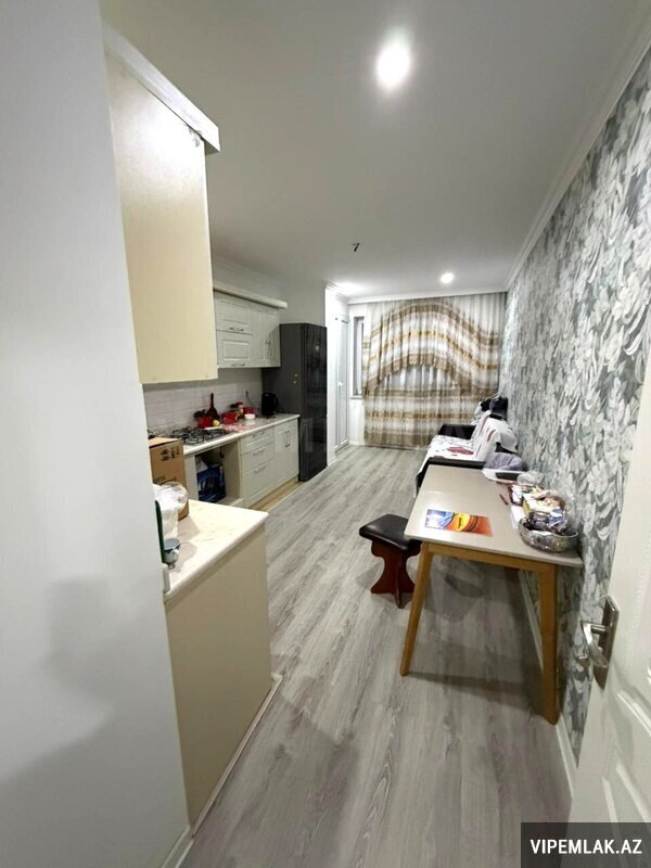 Mənzil tam təmirlidir, mətbəx mebili yığılıb.
