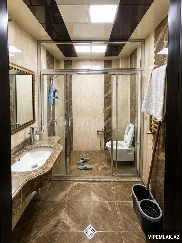 Yasamal rayonu, Yeni Yasamal qəsəbəsi, Məhəmməd Xiyabani küçəsi, Qismət şadliq Sarayının yaxınlığında yeni tikili 16 mərtəbəli binanın 16-cı mərtəbəsində ümumi sahəsi 90.34 kv.m olan 3 otaqlı studio tipli, tam təmirli