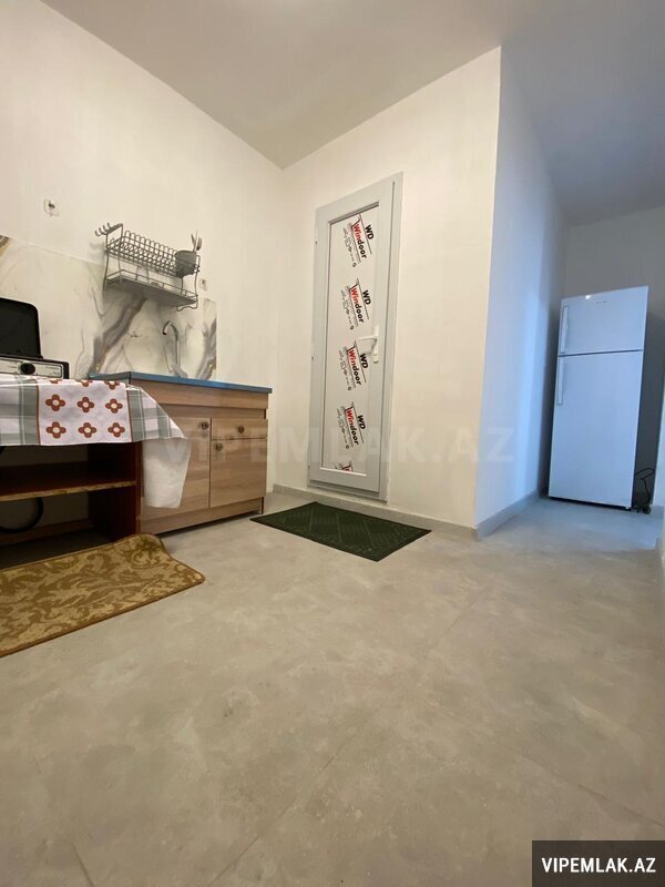 1 otaq 18 kv. mətbəx 7 kv, içində soyuducu, paltaryuyan maşın və çarpayı var, wifi və kombisi də var. Kirayəsi 200 manata.